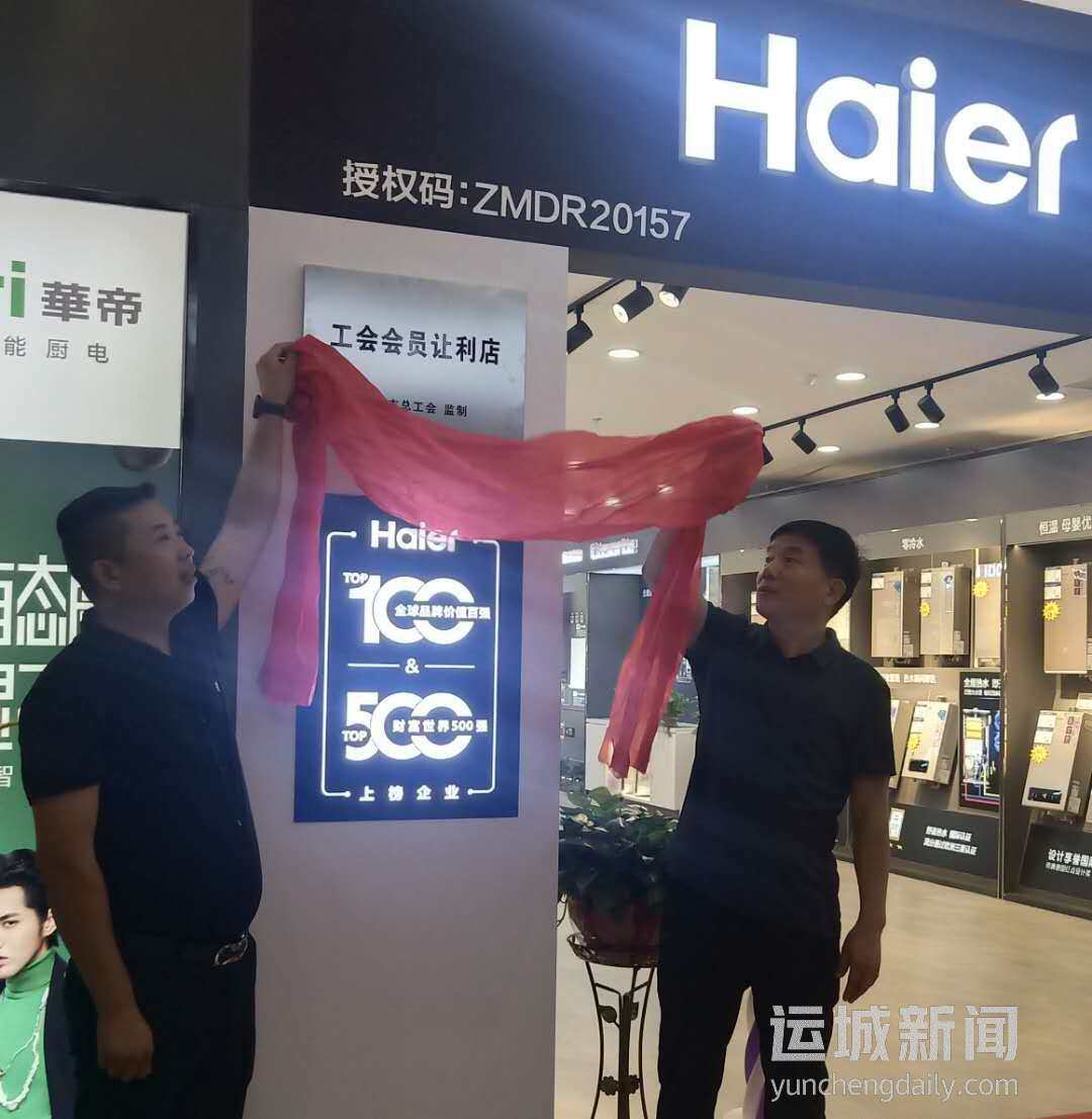 运城新闻网讯(记者 陶登肖)8月15日,市总工会为工会会员让利店运城市辉博家电有限公司居然之家店揭牌。