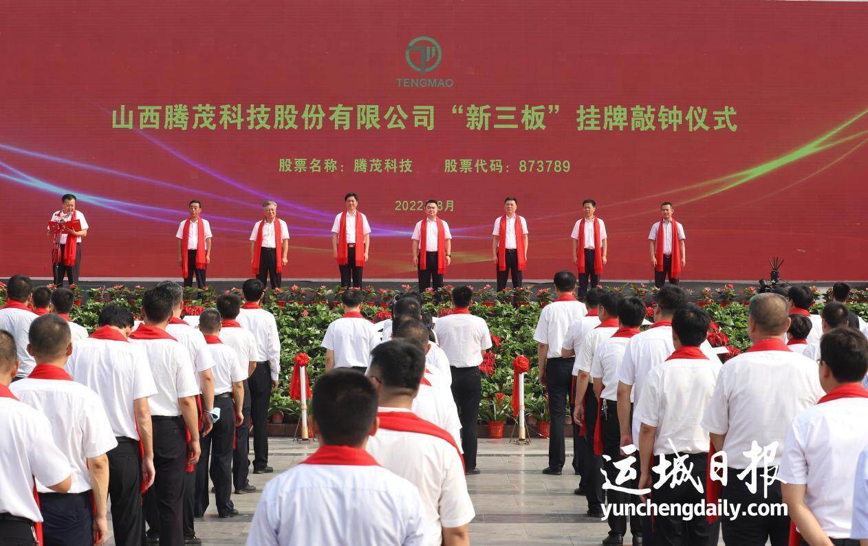 2022年8月8日,山西腾茂科技股份有限公司“新三板”挂牌敲钟仪式在河津市龙门广场举行,这是河津本地企业走向资本市场、开放发展的重要标志,是河津工业发展的重要里程碑。(资料图)