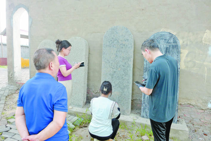 调研人员在白胡子关帝庙搜集信息