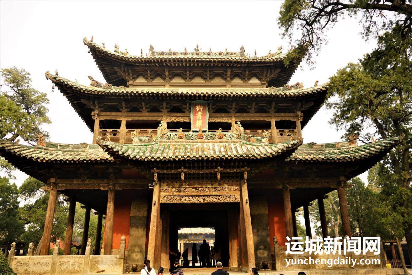 位于运城市盐湖区解州镇的关帝庙,是全国最大的关帝庙,被誉为“武庙之祖”“武庙之冠”。现存的解州关帝庙重修于清代,整个建筑按宫殿式布局,中轴对称,布局严整,宛如一座宫城。中轴线上分前院和后宫两部分。关帝庙前院中轴线上的建筑,按照从前往后的顺序,依次是端门、雉门、午门、“山海钟灵”牌楼、御书楼、崇宁殿。