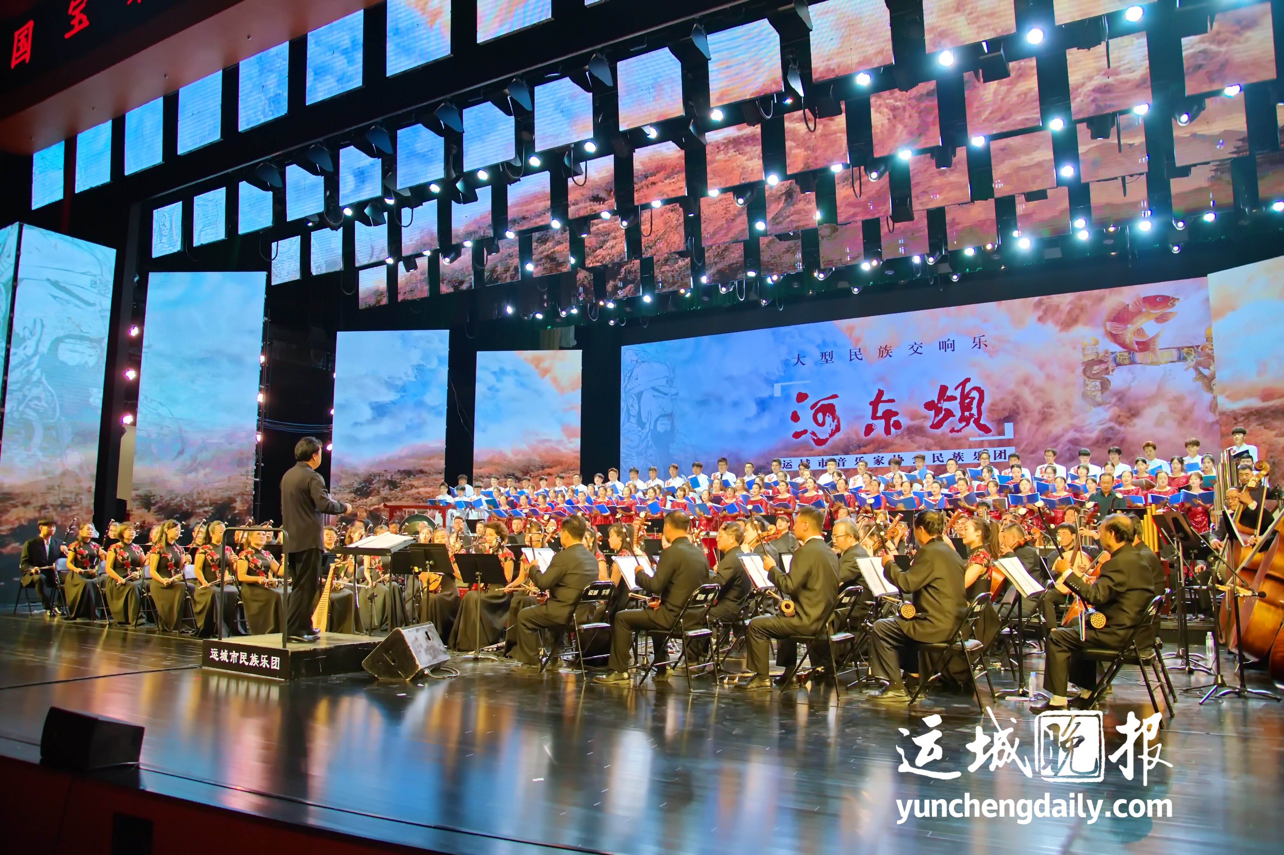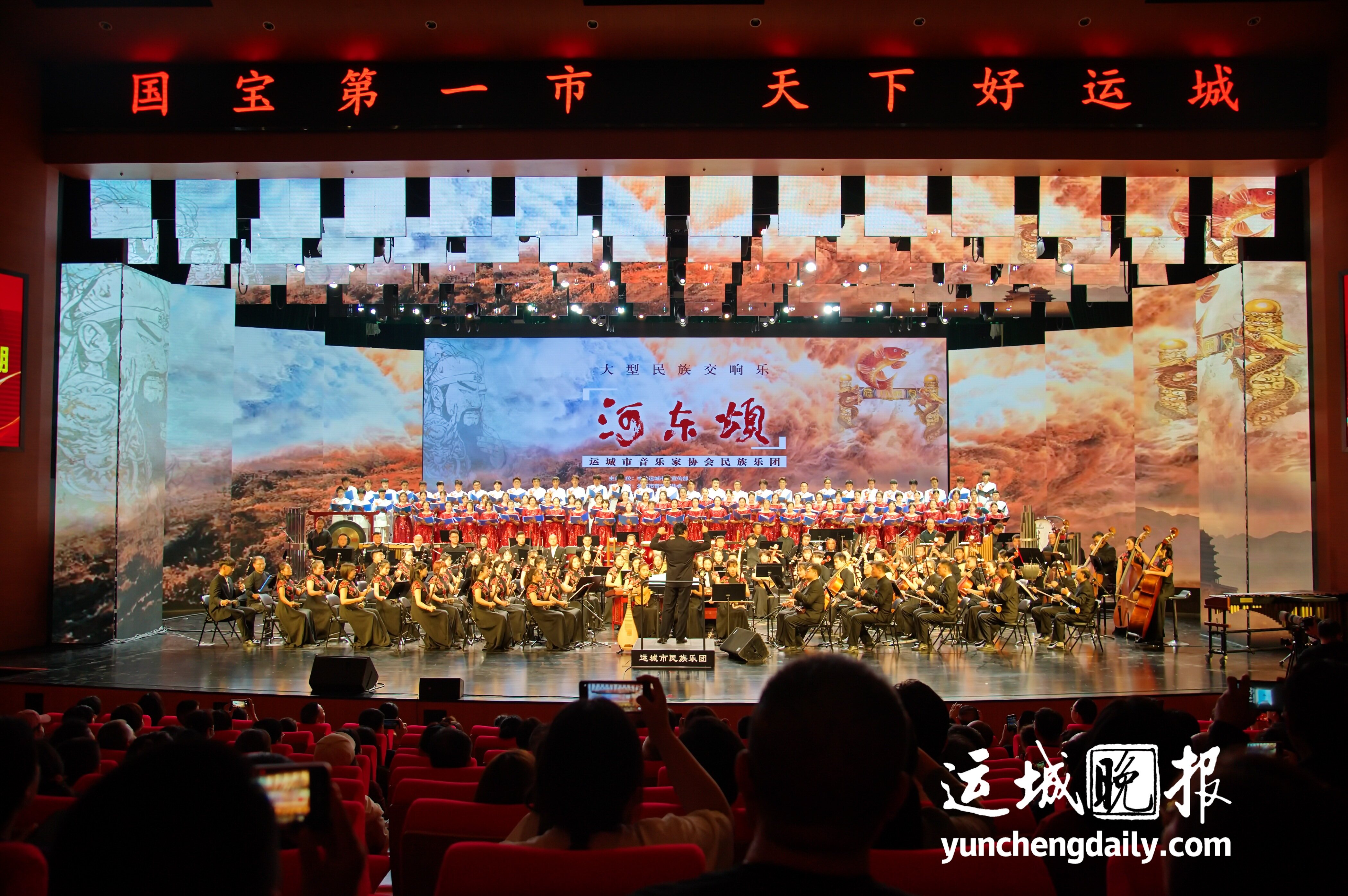 运城晚报讯(记者 范楚乔)9月22日晚,大型民族交响乐《河东颂》在运城会展中心倾情奏响,全场观众一起聆听悠扬回荡的铿锵旋律,享受一场身临其境的视听盛宴。