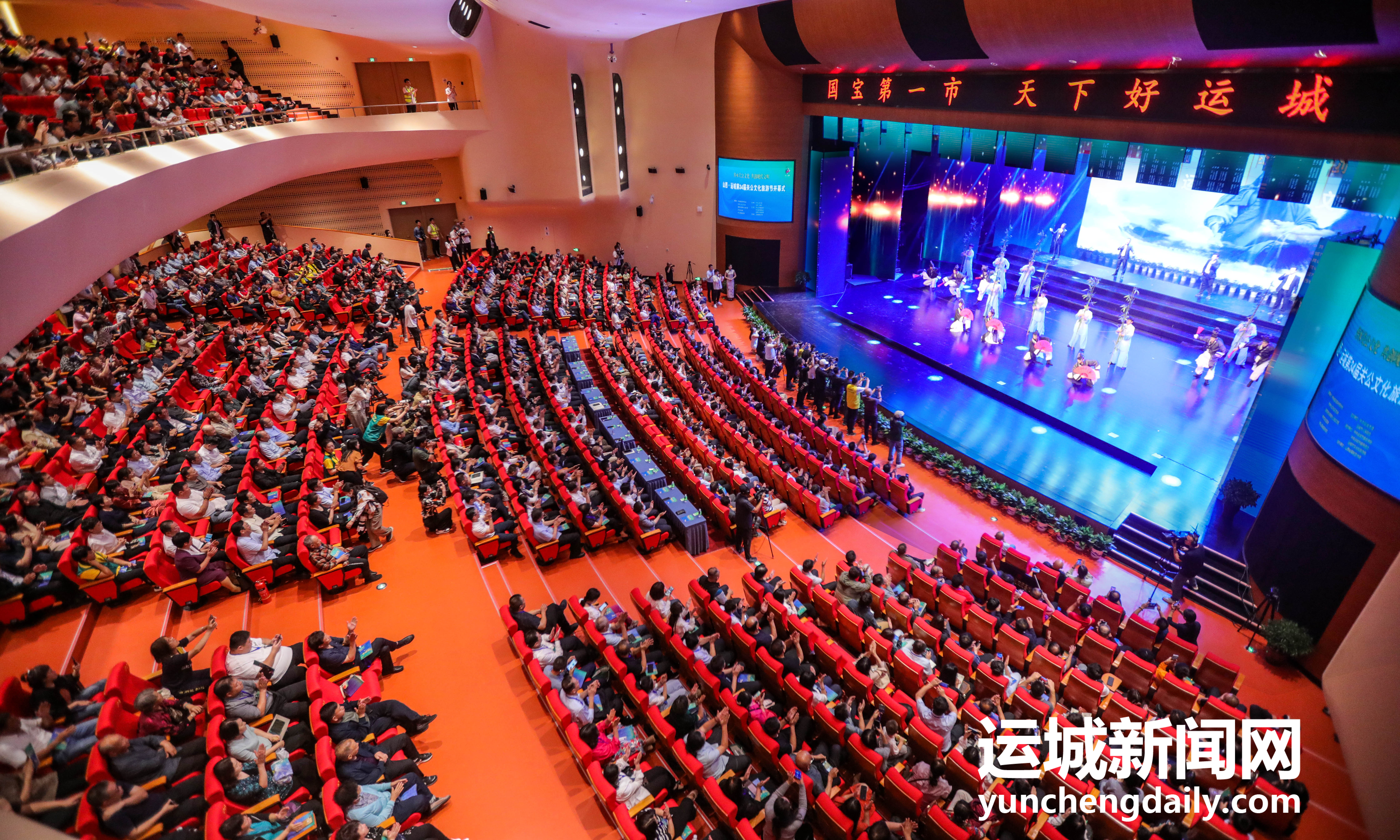 辽阔深远的夜晚被热闹的人群唤醒,在一场又一场“我有拿手戏”文艺节目的表演中,承载着河东文化芬芳的群文之花盛大绽放。9月22日至24日,来自我市13个县(市、区),展示运城传统文化瑰宝和民间艺术精品的28个原创作品,为第34届关公文化旅游节奉上精彩的文化盛宴。《中国饭碗中国粮》《花伞情》《我家住盐池边》《山楂岭上山楂红》《战鼓》……28个作品,涵盖音乐、舞蹈、戏剧、曲艺四大门类,具有鲜明的时代特点、强烈的生活气息和浓郁的地方风情。把舞台搭到群众身边,用运城元素讲述河东故事,这样一场开在“家门口”、接地气的群众文艺大展演,参与演出群众近万人,惠及百姓达百万人次。