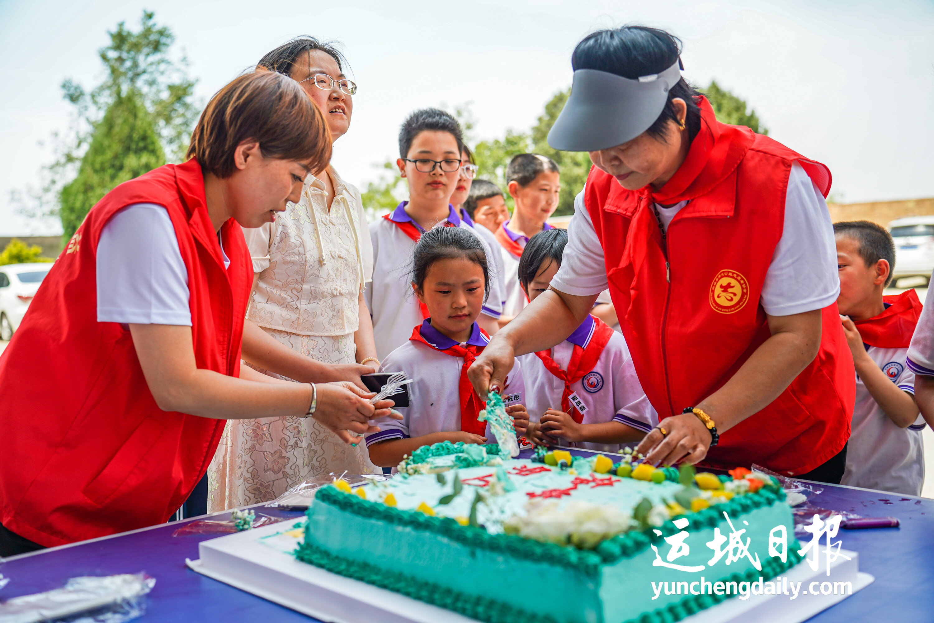 ▲芮城县聚焦民生需求,打造“党建+志愿服务”品牌,引导志愿者在基层治理中积极发挥作用。图为芮城县爱心公益志愿者协会志愿者为阳祖小学学生过儿童节。