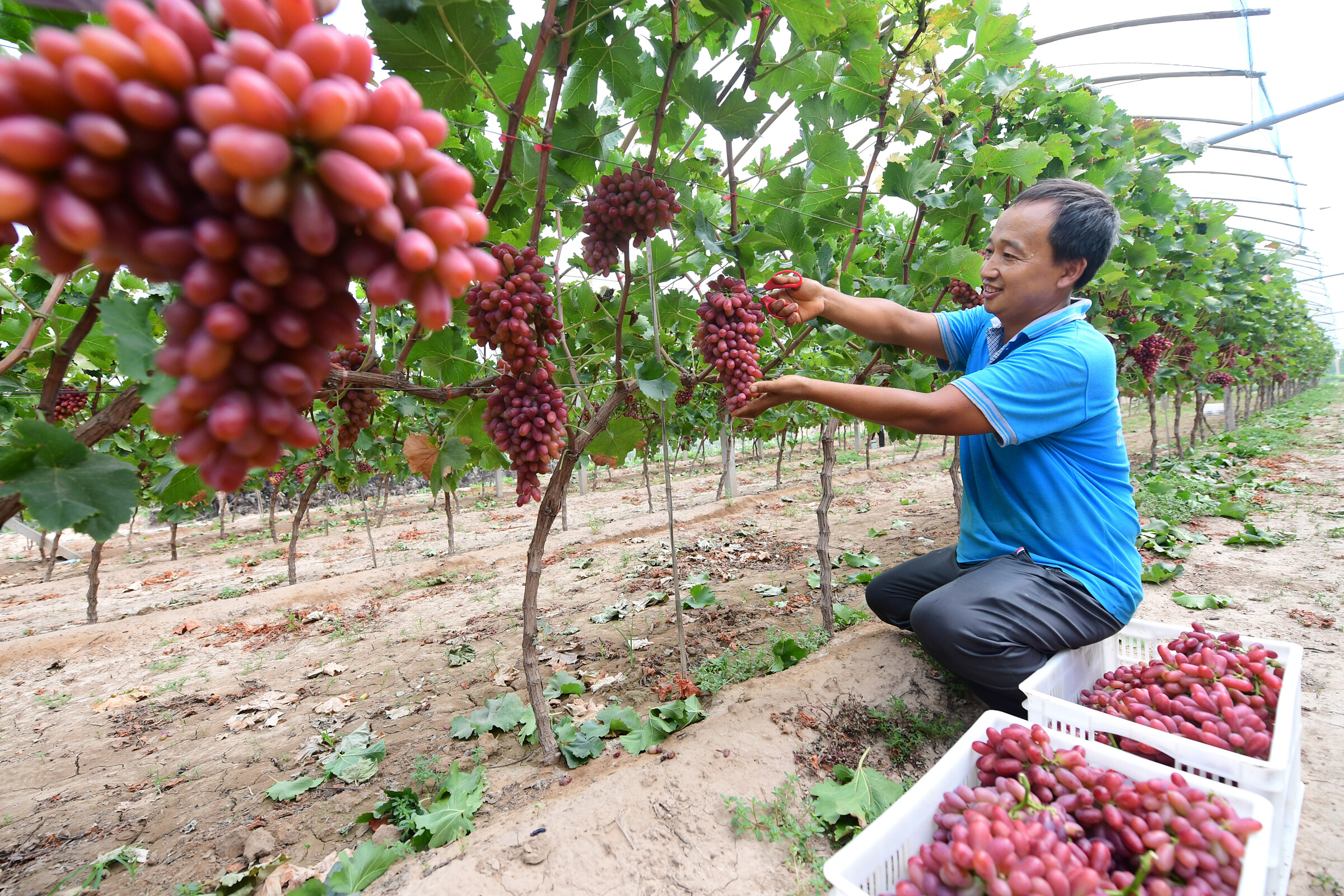 ▲永济市聚焦品牌农业强市打造,推进永济葡萄、永济香椿、永济芦笋、永济黄河鲤鱼、永济黄河赤眼鳟获得全国名特优新农产品认证。图为农户永济市卿头镇永喜庄村克伦生葡萄种植基地采摘葡萄。