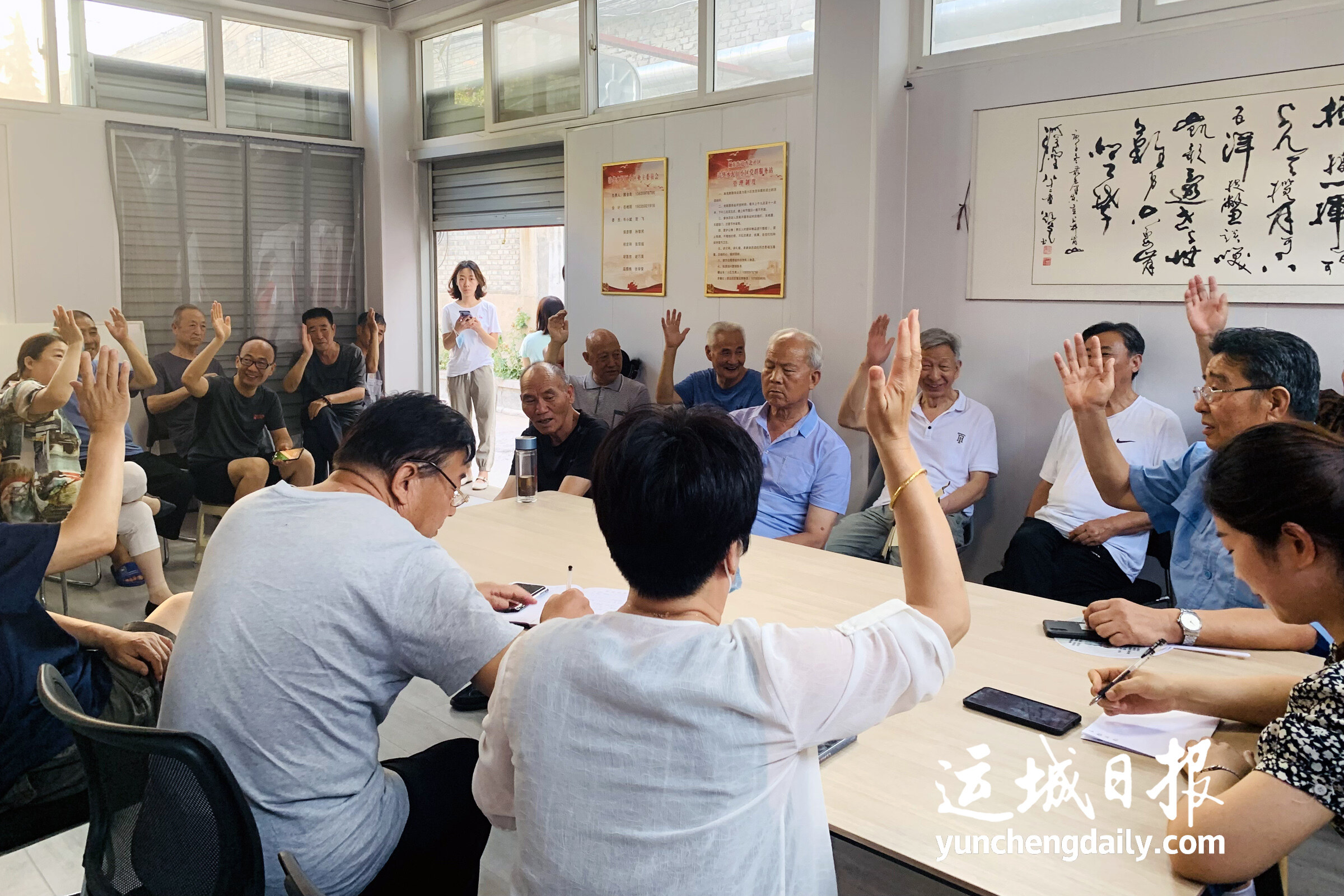 ▲永济市全力推动创建新时代党建引领基层治理示范区走在前列,探索“五会六步”机制破解小区治理难题。图为永济市城东街道杏北社区清华水泥厂小区月底议事会现场。