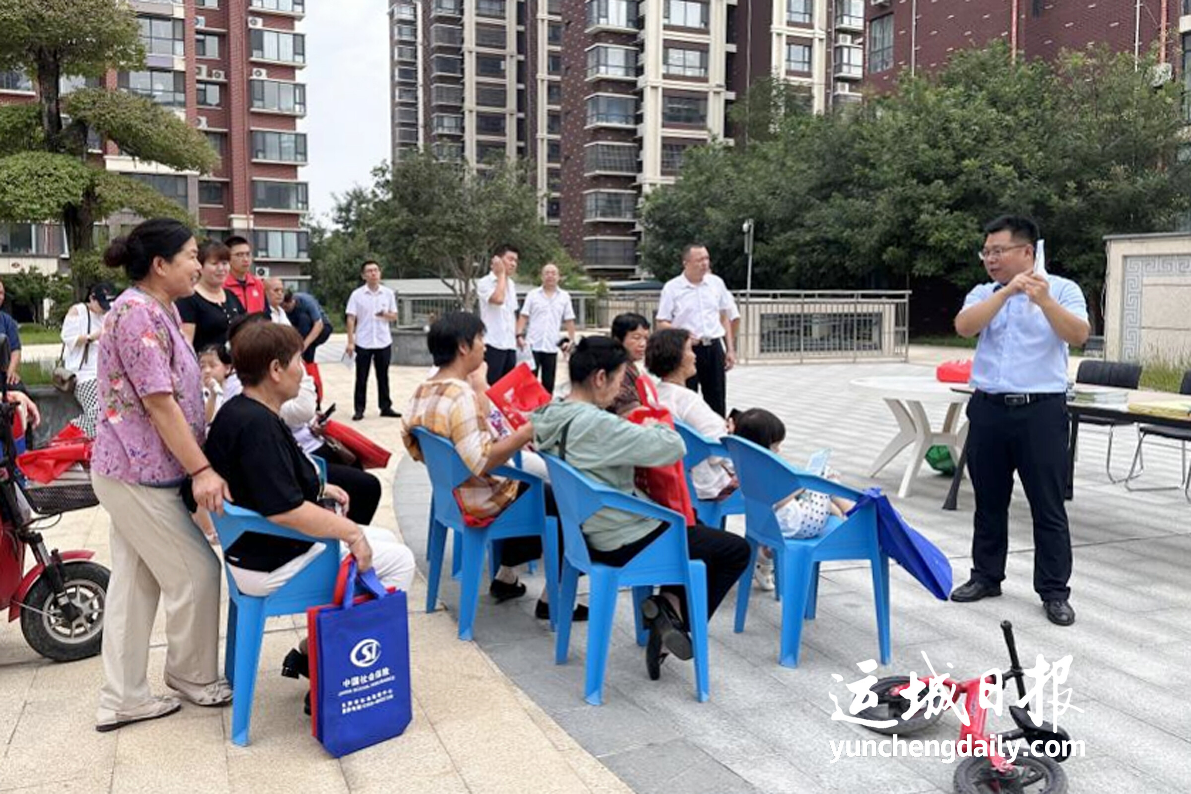 ▲永济市高标准推动“五有”小区党支部建设,打造服务群众的坚强“前哨”。图为永济市城西街道河东社区安居华府小区党支部开展“矢志创新发展 建设科技强国”主题科普活动。