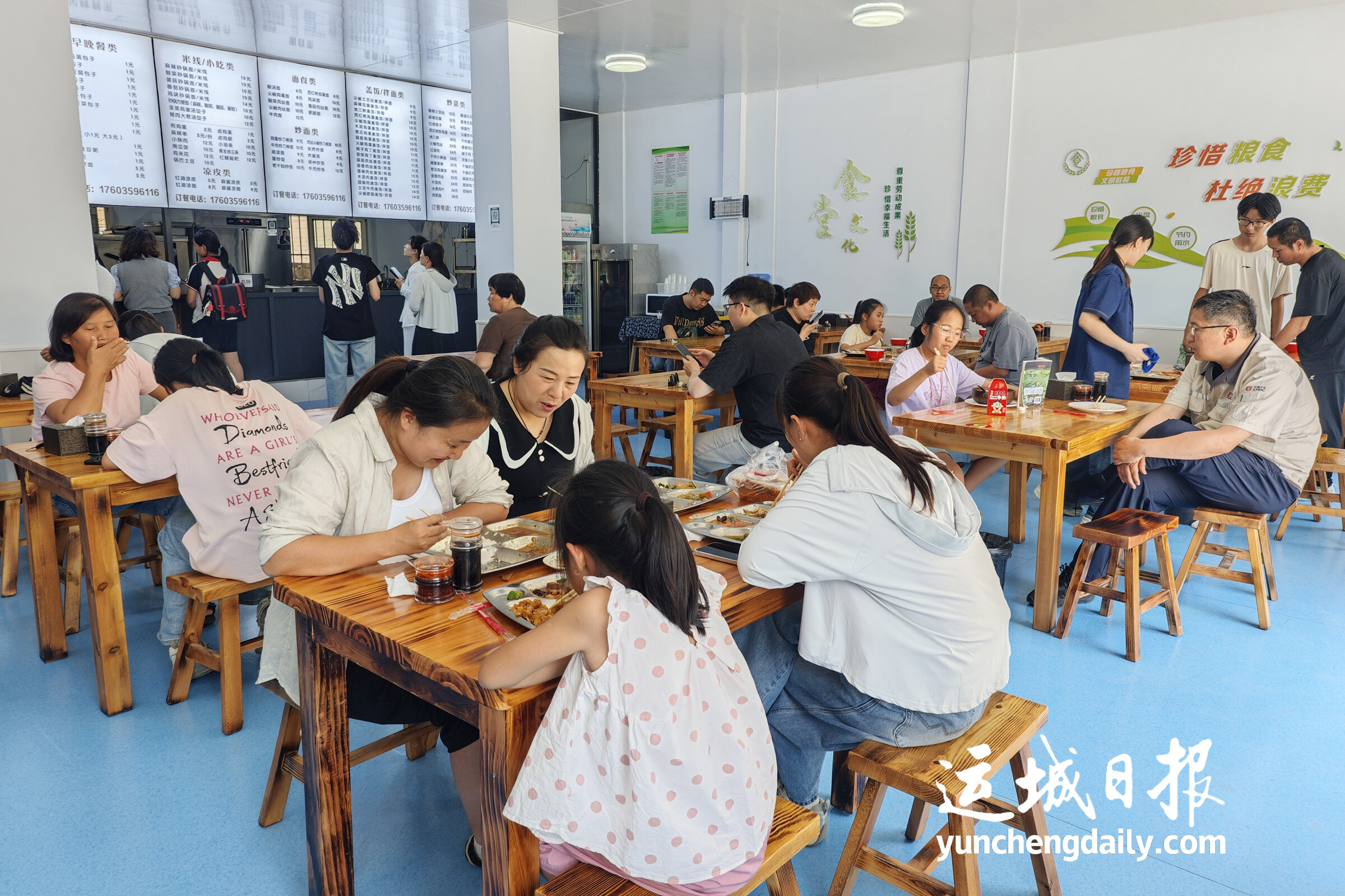 ▲永济市聚焦群众可感可及可触,扎实推进“幸福家园”建设。图为居民在永济市城西街道御苑社区食堂就餐。