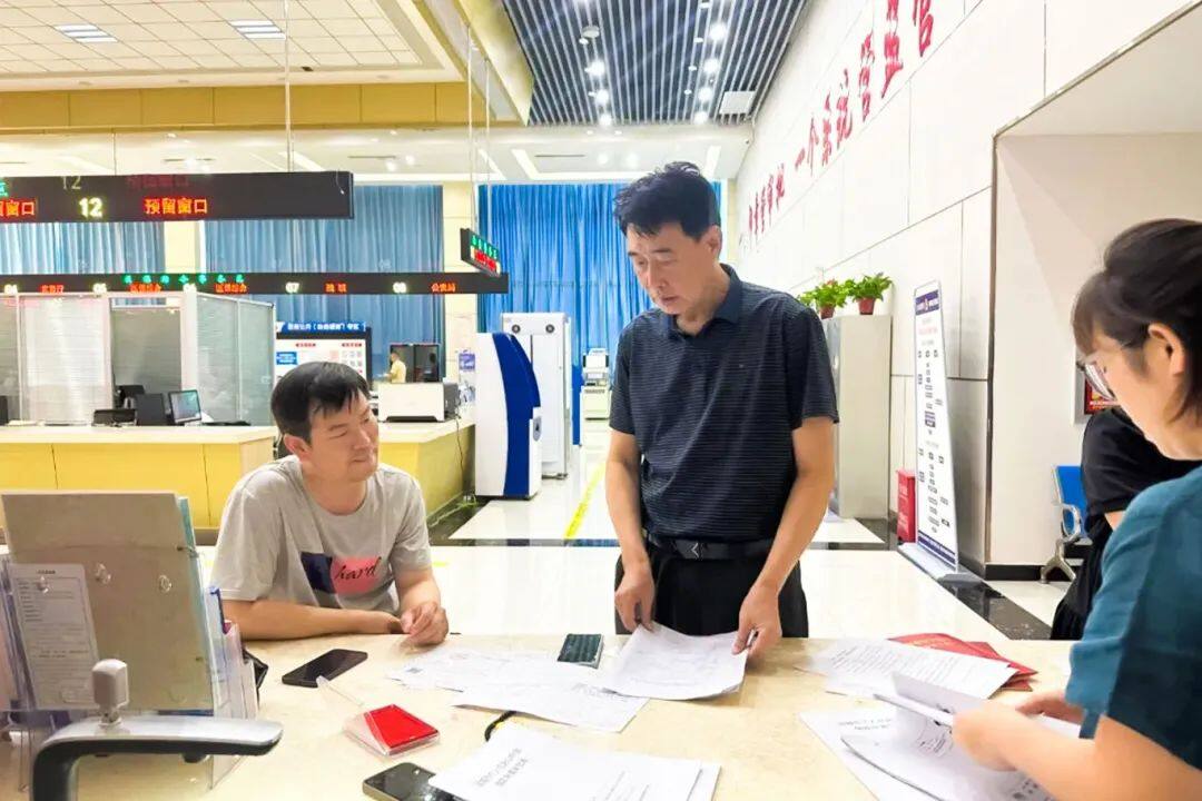 ▲党员干部以“帮办员”身份帮助群众办理住房公积金农村自建房贷款业务。