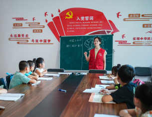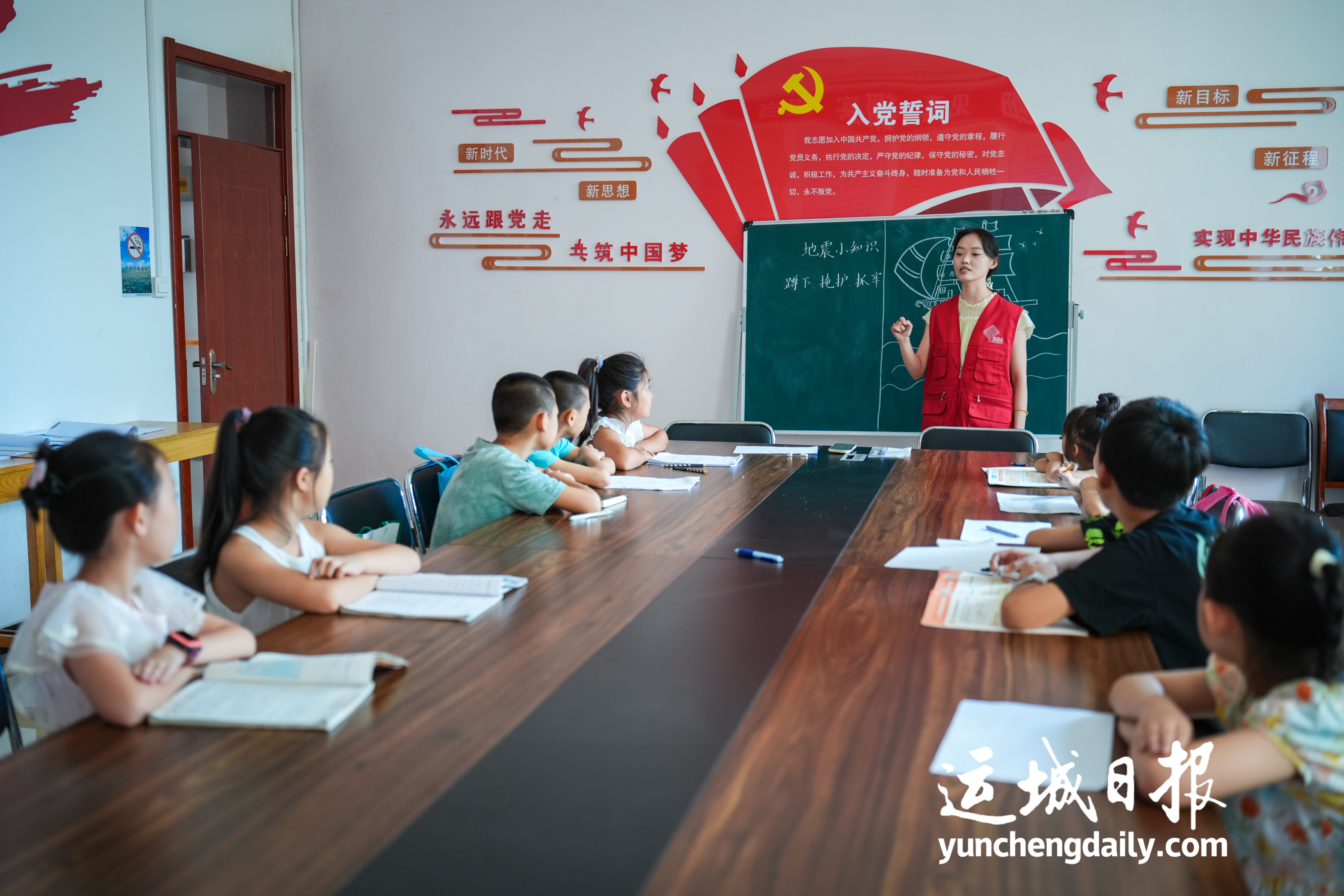 在五龙社区“向日葵”暑期公益课堂上,志愿者为孩子们普及安全知识。