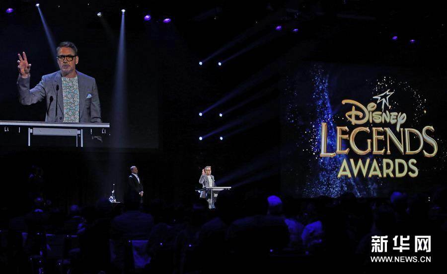 8月23日,在美国加利福尼亚州阿纳海姆会展中心,“钢铁侠”的扮演者小罗伯特·唐尼获得“迪士尼传奇奖”。