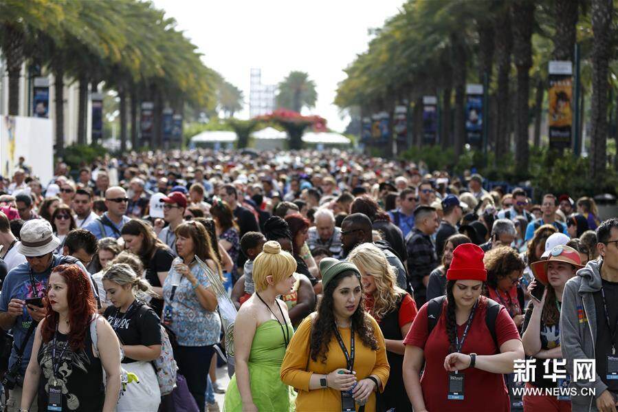 8月23日,在美国加利福尼亚州阿纳海姆会展中心,人们排队进入迪士尼全球粉丝大会现场。