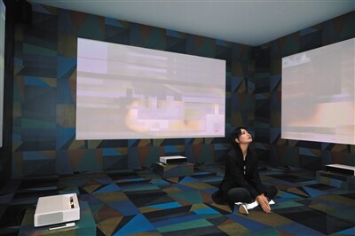 作为展览中感官体验最丰富的空间,梁曼琪在《变相空间》中借由几何形状和颜色探索自身与周围的环境,由此呈现内心的不确定性,矛盾性和对抗性。周笔畅则在空间中再现本次展览概念的灵感来源,她将专辑《LUNAR》中曲目的分轨全部解构重组,使7曲混为1曲,浓缩后的作品试图呈现声音中月相的圆缺与轮回。周笔畅透露,这个空间里的另一个巧思,是观众可以站在现场的麦克风前发出任何声音,根据不同的声音,不同的影像也会穿插出现在墙面原有的影像之中。