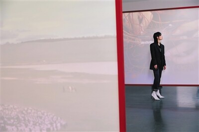在周笔畅的部分,她选择了个人职业生涯中一个十分具有代表性的场景——2005年比赛期间表演《解脱》的片段。在这段录像中,如今的周笔畅,坐在放着当年穿着绿西装、戴着茶色墨镜的周笔畅演唱《解脱》片段的电视旁,以“陌生的普通人”身份与14年前的自己形成镜像。“可能有些人看到会觉得挺傻的,但蛮有意思,”周笔畅笑着透露,这段视频拍摄的过程非常迅速,“我觉得艺术不是一个严肃的东西,它有时候也可以娱乐化,那就看每个人的理解不同了。有些人可能觉得很无聊,不知道影像中的人在做什么,有些人也可能会产生一些个人的想法,我本人就还挺乐在其中的。”