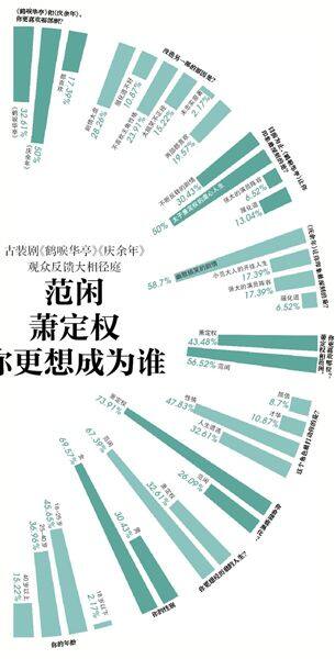 这两部剧有相似的背景,却又是完全不同的风格,观众更喜欢哪一种?接受新京报问卷调查的观众里,《庆余年》的拥趸比《鹤唳华亭》更多;他们因为范闲现代人的性格而喜欢他,也因为萧定权的虐心人生而同情他。这届观众也更喜欢轻松搞笑的内容,对于苦情戏有本能的排斥。