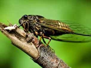地下的知了数量庞大,算得上一支虫族队伍了。据说北美洲东岸森林中的蝉幼虫,可在地下生活长达17年。原来,它们在17年前,甚至更长的时间,便进入地球的某棵树下接入古老的脐带,吮吸着甘甜的汁液,一天天成长。一棵树下往往可以聚居很多知了。