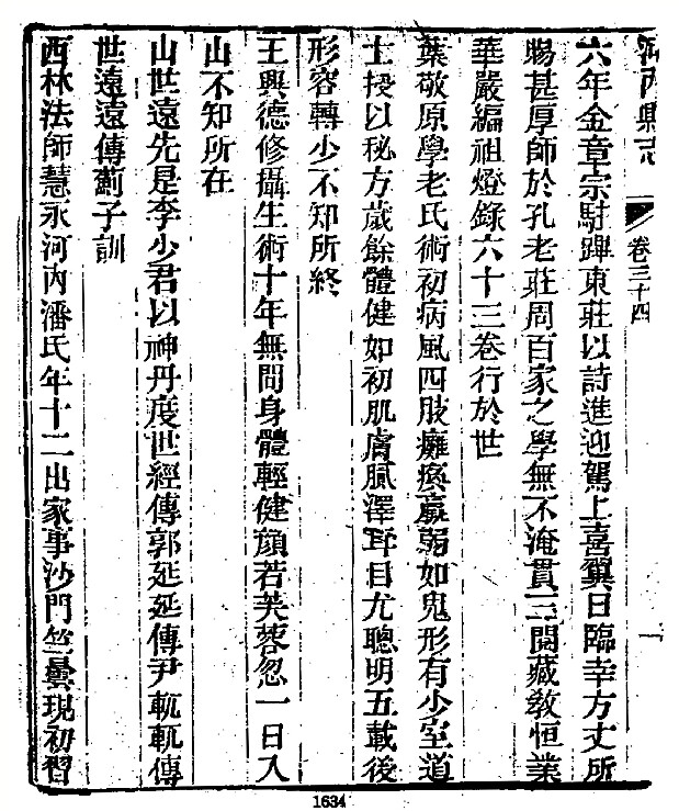 万松行秀禅师,姓蔡氏,年十五礼邢台净土赟公为师。太和(原文有误,应为泰和)六年,金章宗驻跸东庄以诗进迎驾。上喜,翼(通翌)日临幸方丈,所赐甚厚。师于孔老庄周百家之学,无不淹贯,三阅藏教,恒业《华严》,编《祖灯录》六十三卷行于世。(影印件附后)
